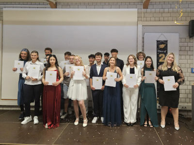 Neben den Zeugnissen wurden außerdem drei Preise von der Schule verliehen. So wurden zwei Schüler für ihr herausragendes Engagement in der Klasse und eine Schülerin für ihren unermüdlichen Leistungseinsatz geehrt. Eine Lehrerin sorgte mit ihren Liedern für bewegende Momente und am Ende für eine ausgelassene Stimmung, bei der es niemanden mehr auf den Sitzen hielt.