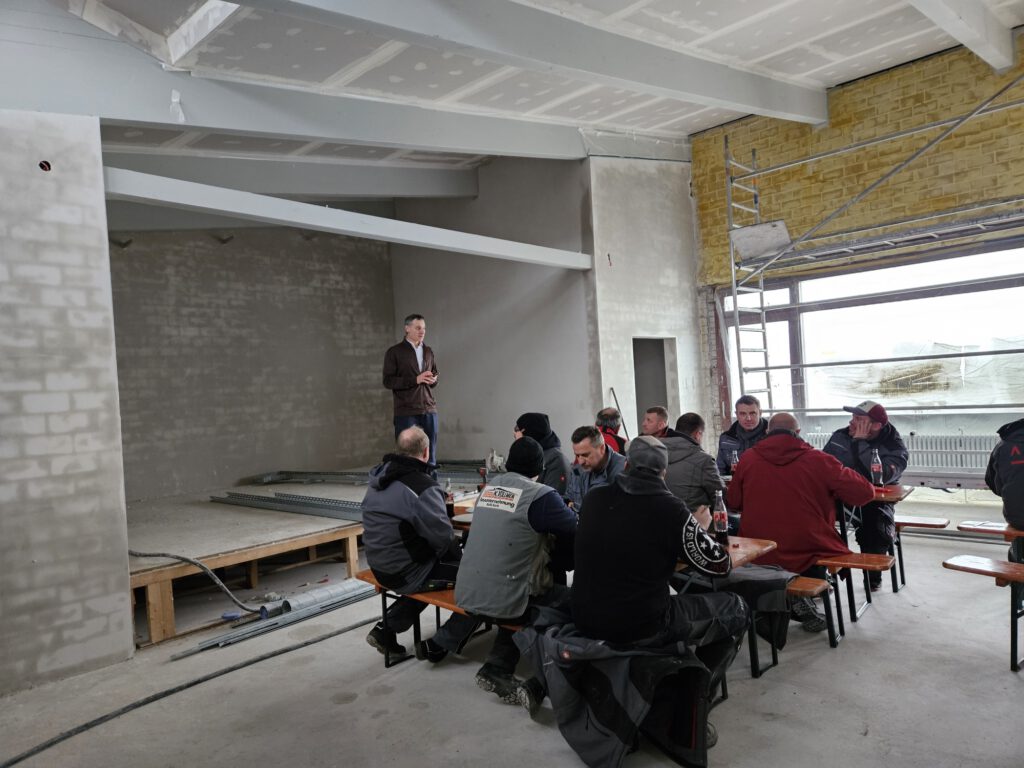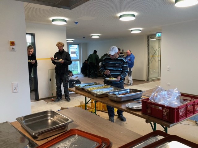 Mit einem Mittagsimbiss bedankte sich die Diakonie Kork kurz vor Weihnachten bei den beteiligten Firmen und Mitarbeitenden für die tatkräftige Unterstützung bei den laufenden Baumaßnahmen. Zu den aktuellen Projekten gehören der Anbau der Hanauerland Werkstätten am Werk I in Kork, der Neubau eines Wohnhauses im Herbert-Degenhart-Weg in Kork, die Sanierung des ev. Gemeindehauses und des Sonnenblumenwegs sowie der Neubau in der Kanzmattstraße in Kehl. „Durch Ihre Unterstützung werden unsere Pläne und Ziele Wirklichkeit“, sagte Daniel Kuhn, Technischer Leiter der Diakonie Kork, in einer kurzen Ansprache. „Die Arbeit auf den Baustellen erfordert nicht nur fachliches Können, sondern auch großes Engagement – vielen Dank für Ihren Einsatz“.