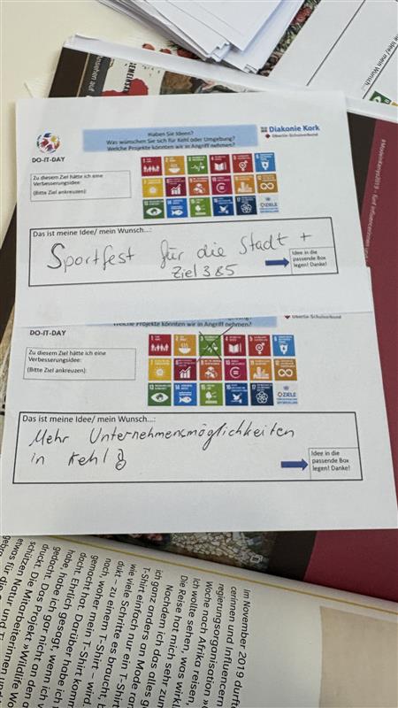 Besonders wichtig war der direkte Austausch mit der Stadtgesellschaft. Die Schülerinnen und Schüler fragten die Besucherinnen und Besucher gezielt, was sie sich für Kehl wünschen, was verbessert werden könnte oder welche Projektideen zur Erreichung der Nachhaltigkeitsziele beitragen würden. Die Rückmeldungen reichten von mehr Begegnungsmöglichkeiten in der Stadt über Sport- und Freizeitangebote bis hin zu Ideen für ein lebendigeres Stadtleben und nachhaltige Mobilität. Diese Anregungen fließen nun als Impulse in die weitere Projektarbeit ein.