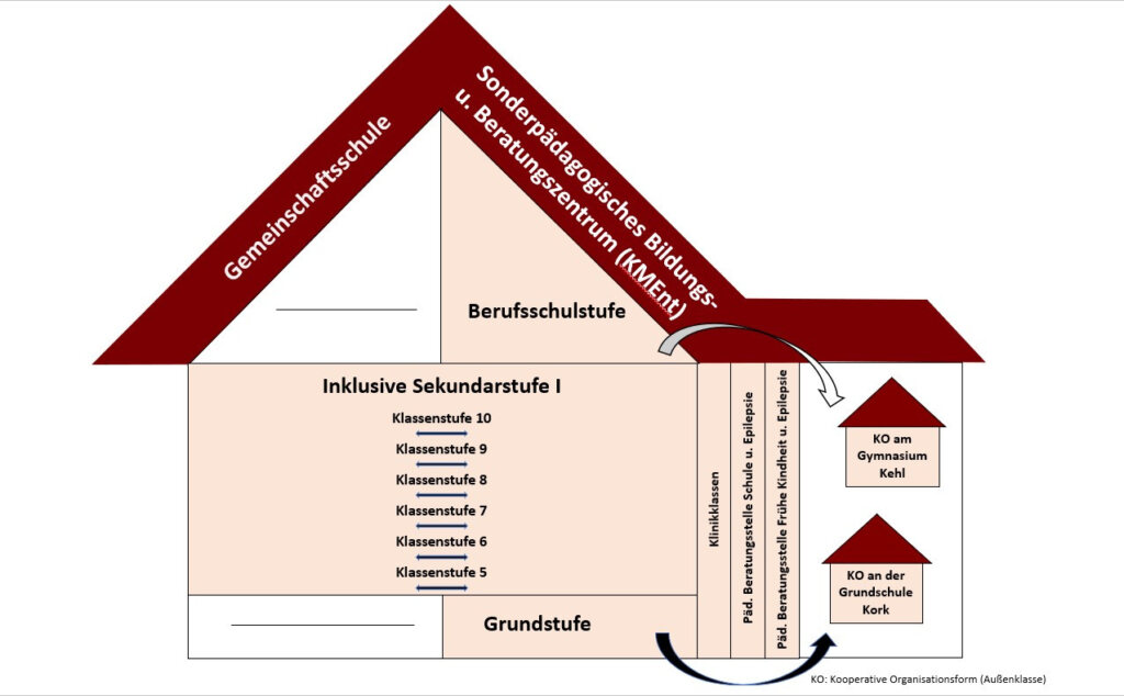 Unsere inklusiven Lerngruppen / Klassen (Klassenstufen 5-10), unsere Klinikklassen und unsere Berufsschulstufenklassen sind an der Stammschule in Kork verortet.