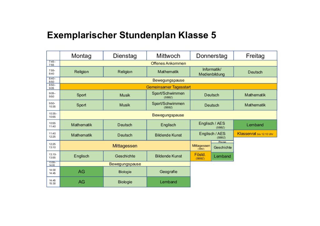 Der Unterricht an der Kooperativen Organisationsform an der Grundschule in Kork beginnt täglich um 8:35 Uhr und endet Mo-Mi um 15:20 Uhr, am Do um 13:35 Uhr und am Fr um 12:10 Uhr.