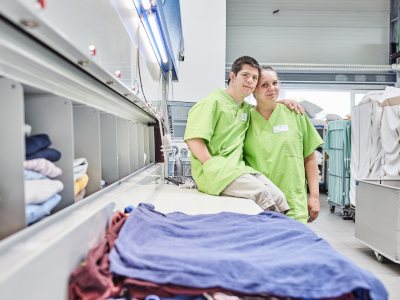 Die Textil-Service Kork gGmbH reinigt für gewerblichen Kunden Wäsche, insgesamt sind das 581.000 kg Wäsche pro Jahr.